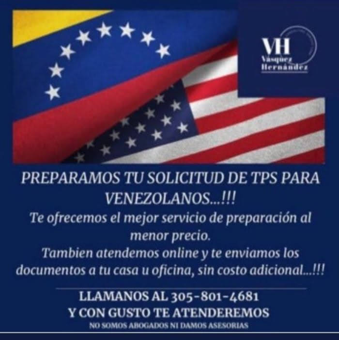 La firma Vásquez Hernández ayuda en la preparación de solicitudes de TPS para venezolanos en Estados Unidos, al menor precio