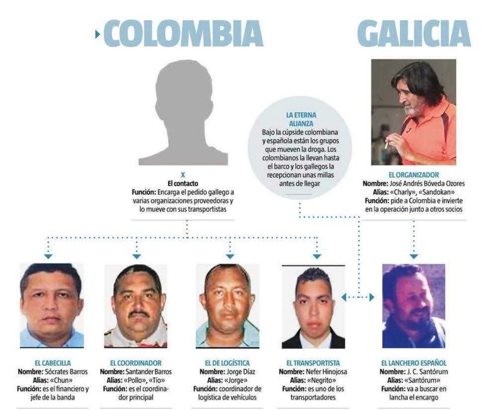 Sócrates Gabriel Barros Fince, alias «Chun» era el principal cabecilla. Para él trabajaban Santander Barros Pulido alias «Pollo», que hacía labores de coordinación; Jorge Leonardo Díaz, «Jorge», encargado de la logística y Nefer Alfonso Hinojosa, «Negrito», que hacía labores de transporte. La Policía colombiana, en colaboración con la DEA, ha detenido en el marco de la operación «Clan Indio» –desarrollada hace menos de un mes– a estos cuatro presuntos integrantes de la organización de «lancheros» colombianos más activa del momento, los responsables de despachar las últimas grandes partidas de cocaína que han llegado a EE UU y Europa en el último año y medio. Entre las incautaciones más importantes que se atribuyen a estos lancheros indígenas se encuentra la del buque «Karar», el barco mercante de bandera de togoleña cargado con casi cuatro toneladas de cocaína que fue interceptado a 300 millas de las costas gallegas el pasado 28 de abril, en pleno confinamiento. Los investigadores sitúan en la cúspide de la estructura colombiana a «El Señor»: Cristian Camilo Córdoba Cuesta, el financiero principal, según la policía colombiana, y el contacto con las organizaciones de centro América, islas del Caribe, México, Europa y EE UU. En el ultimo año, según las mismas fuentes, había dejado de hablar por teléfono y solo lo hacía a través de emisarios de confianza y mensajes encriptados, reseñó Laura L. Álvarez en el medio español La Razón.