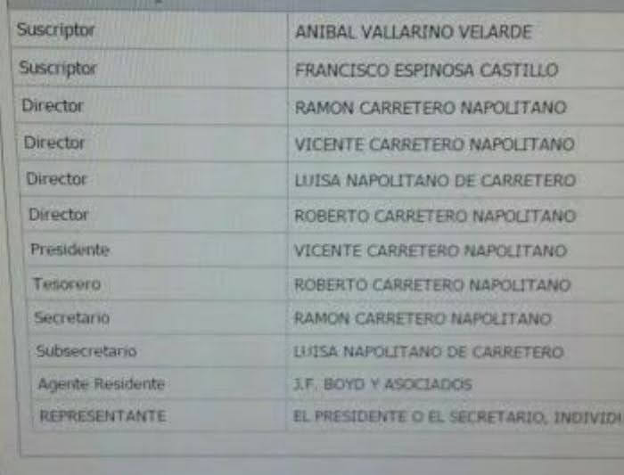 En la empresa Lanvicorp todo quedó en familia: los hermanos Ramón y Vicente Carretero Napolitano comparten la junta directiva con otro pariente, Félix Fallabella Napolitano, quien ocupa el puesto de tesorero. Hasta el 25 de marzo de 2013, Roberto, otro de los hermanos Carretero Napolitano se mantuvo al frente de la Presidencia, pero ese día se realizó una reunión extraordinaria para designar a los nuevos integrantes de la directiva, según precisa uno de los documentos contenidos en el expediente que formalizó la creación de la sucursal en Caracas.
