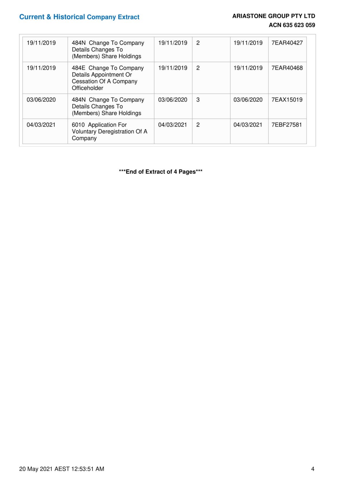 La empresa australiana, ubicada en la localidad de Geelong, operó por dos años. Los registros señalan que el 9 de mayo de 2021 quedó inactiva, menos de un mes después de conocerse en los medios la orden de captura en contra de Hernández Chacón y Perozo Urdaneta.