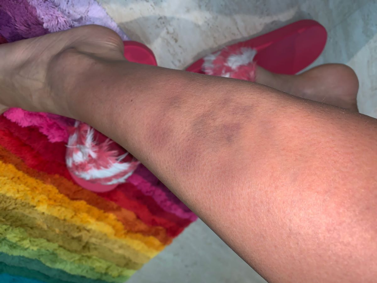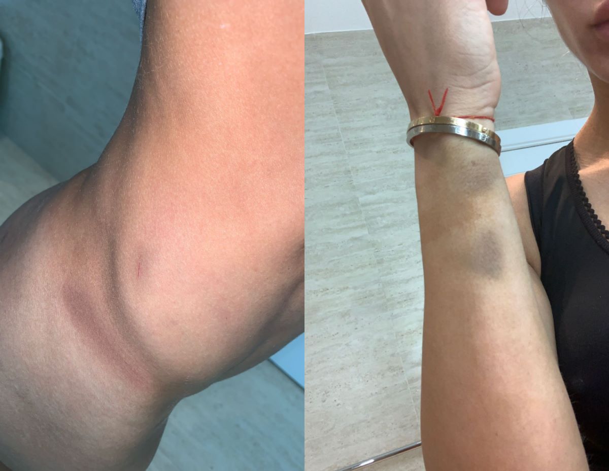 las redes, se aprecian los hematomas y rasguños en brazos, piernas y cintura,