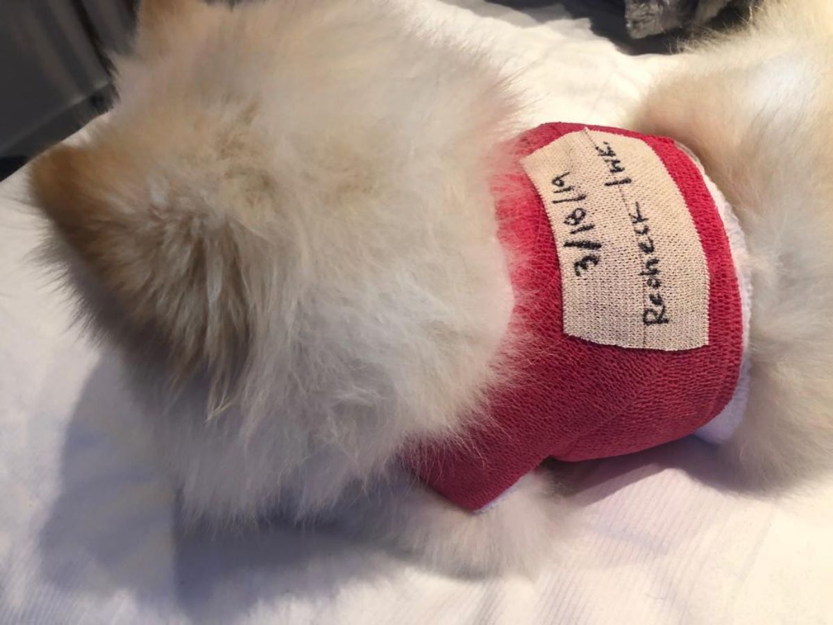 un médico veterinario, que le aplicó un vendaje en el torso y le recetó a la