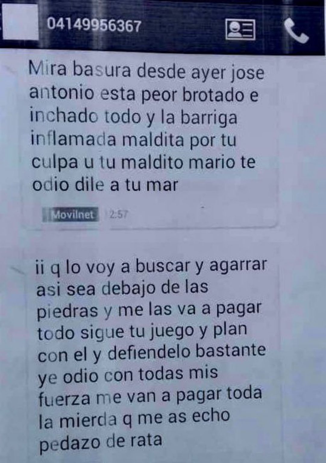 Señaló que su expareja la acosaba por iniciar una nueva relación sentimental. Precisó que Villalobos Padrón publicaba imágenes desacreditándola a través de las redes sociales y le enviaba “mensajes de odio”.
