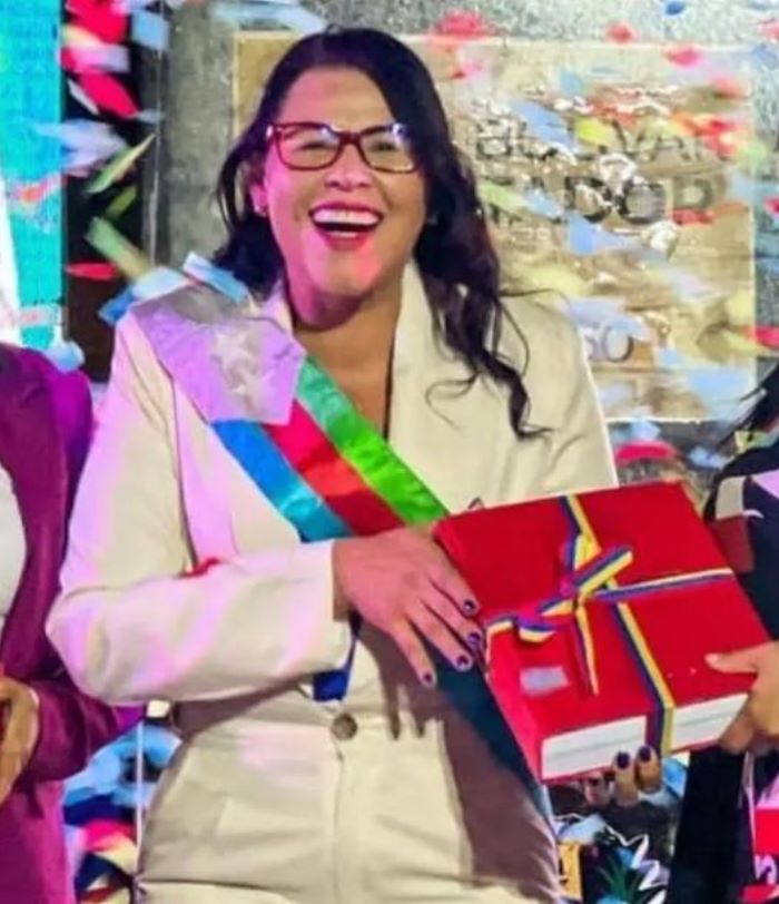 Natali Bello en 2021 cuando era candidata (izq.) y en 2023 como alcaldesa (der.)