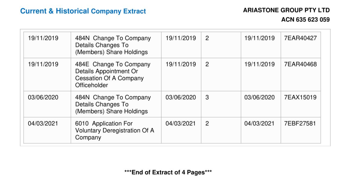 Según un reporte de la agencia Bloomberg, Ariastone Group Pty Ltd fue una de las empresas encargadas de apoyar al gobierno chavista en la venta y movilización de petróleo hacia otros países, eludiendo así las sanciones estadounidenses. La compañía quedó inactiva pocos días después de que se conociera la orden de captura contra los dos empresarios venezolanos en marzo de 2021.