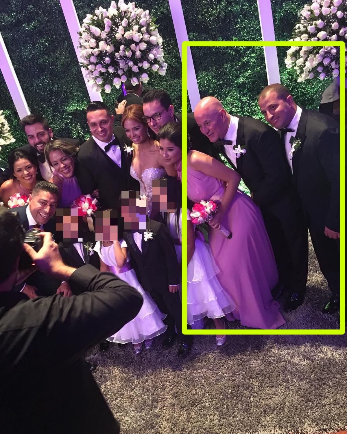 En la segunda fotografía, tomada días después, en la Quinta Esmeralda, el lugar donde se realizó el festejo de la ceremonia religiosa, se ve a Julio junto a su esposa, rodeado por sus familiares, mientras que a la derecha se repiten Oscar Antonio Patiño Torres y Samir Makiad El Fallah, personaje relacionado en el pasado con un gigantesco fraude cambiario y con supuestos nexos con el blanqueo de dinero y el narcotráfico.