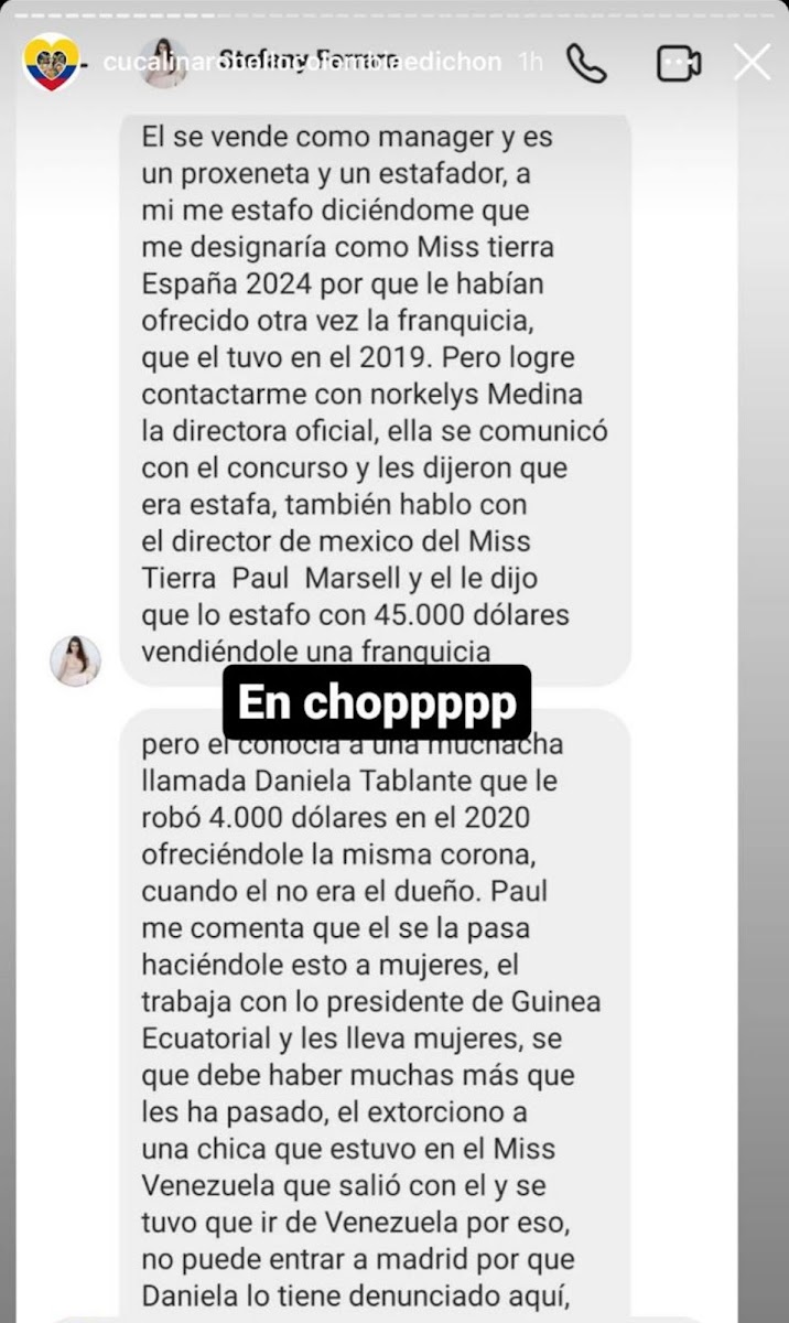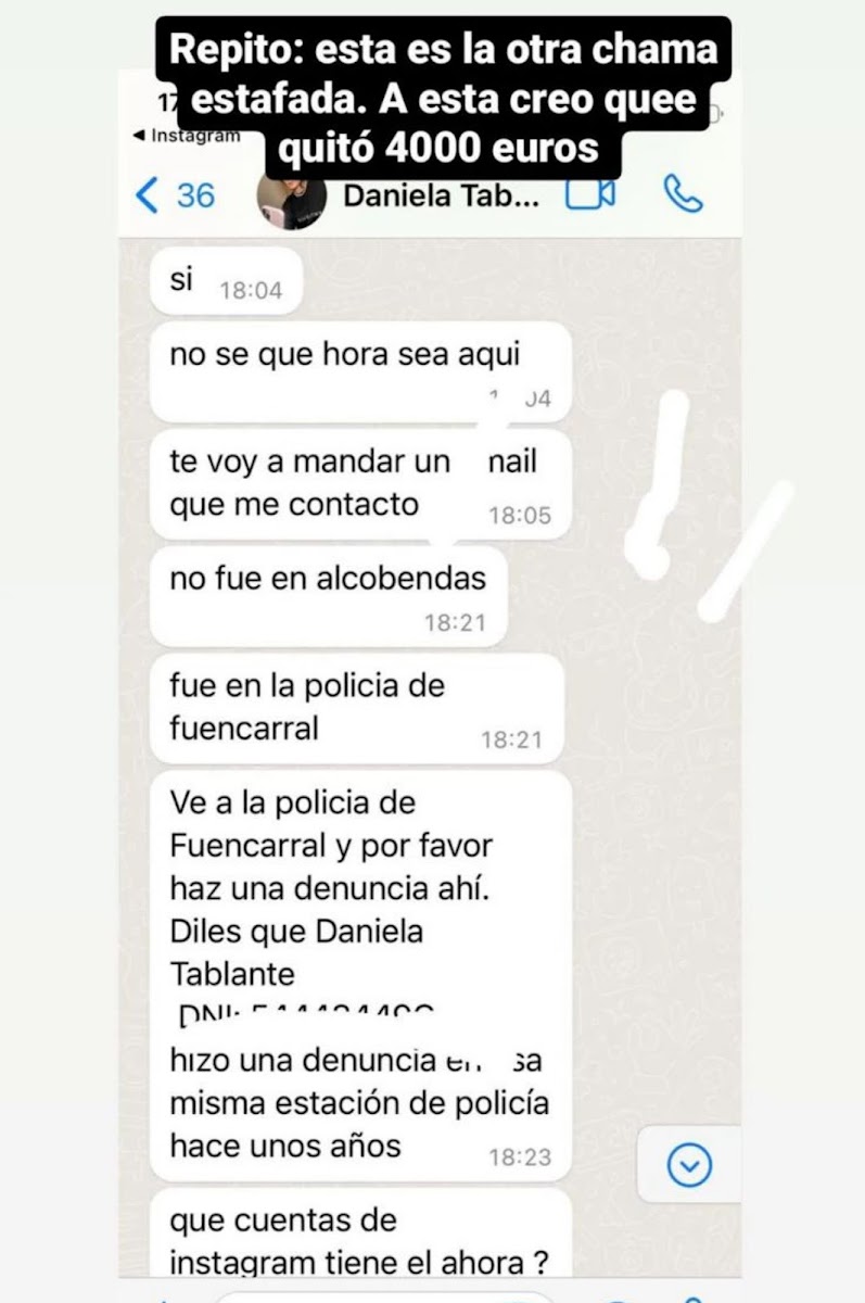 Entre las otras afectadas se encuentra Daniela Tablante, quien también denunció a Sánchez y lo acusó de haberle robado 4.000 euros en el 2020, ofreciéndole la misma corona de Miss Earth Spain, cuando él no era el dueño de la franquicia.