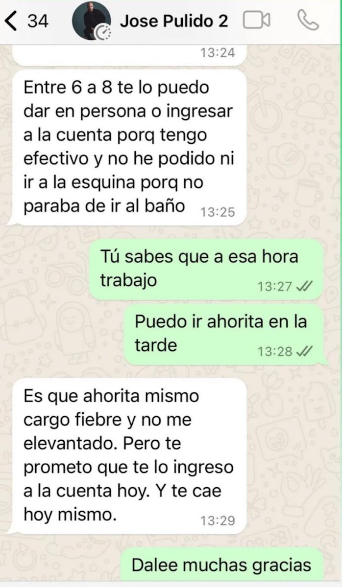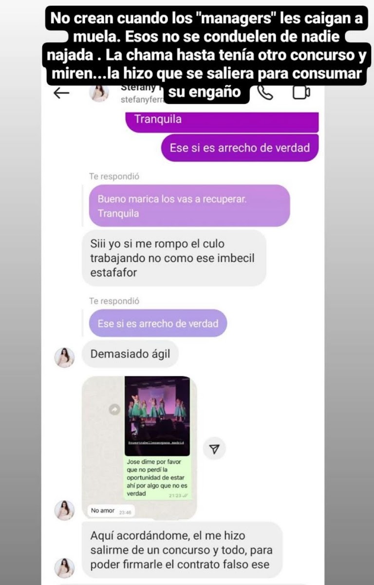 Capturas de conversaciones de WhatsApp revelan cómo Sánchez solicitaba cantidades de dinero a varias chicas, en algunos casos bajo la promesa de devolverlo en fechas cercanas, mientras que en otros, bajo la excusa de necesidades financieras urgentes. Estas conversaciones, ahora expuestas en el dominio público, muestran las tretas y manipulaciones ejercidas por Sánchez Pulido para obtener beneficios económicos.
