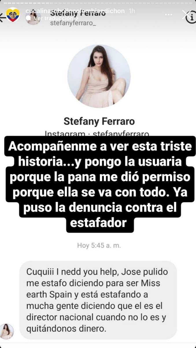 Ferraro decidió entonces investigar y se comunicó con Norkelys Medina, la directora oficial de Miss Earth Spain, quien le confirmó que todo era una estafa y que Sánchez Pulido no tenía ninguna relación con el concurso.