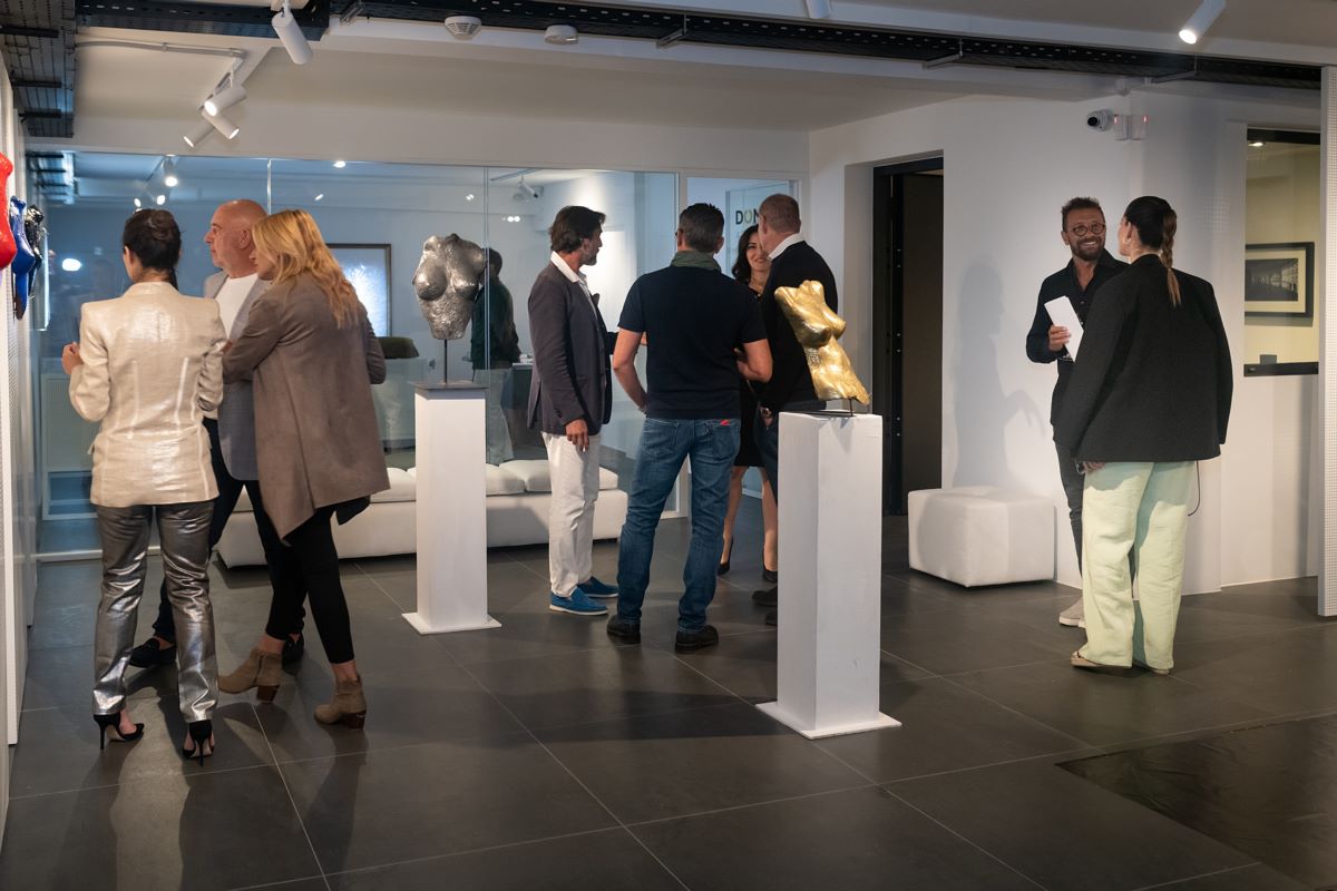 En el centro, al lado derecho de la escultura y de zapatos azules, el empresario Erik Roveta