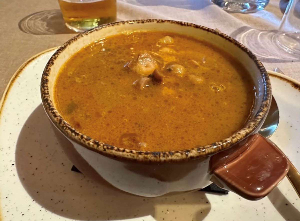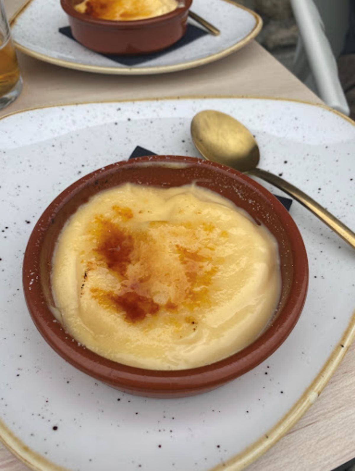 La carta es un verdadero canto a los productos locales: desde la “Parrillada de verduras a la brasa de leña con salsa romesco” hasta la “Tabla de degustación de quesos Tros de Sort”, cada entrada es una promesa de calidad. La “Cazuelita de gambas al ajillo” es ya un pedido habitual en el grupo de Pulgar, mientras que la “Flor de alcachofa confitada” y el “Falso risotto con trigueros” son muestras de una cocina que sabe ser tanto auténtica como inventiva. Los entremeses como la crema Tou dels til-lers, rúcula crujiente y virutas de parmesano, cautivan el paladar.