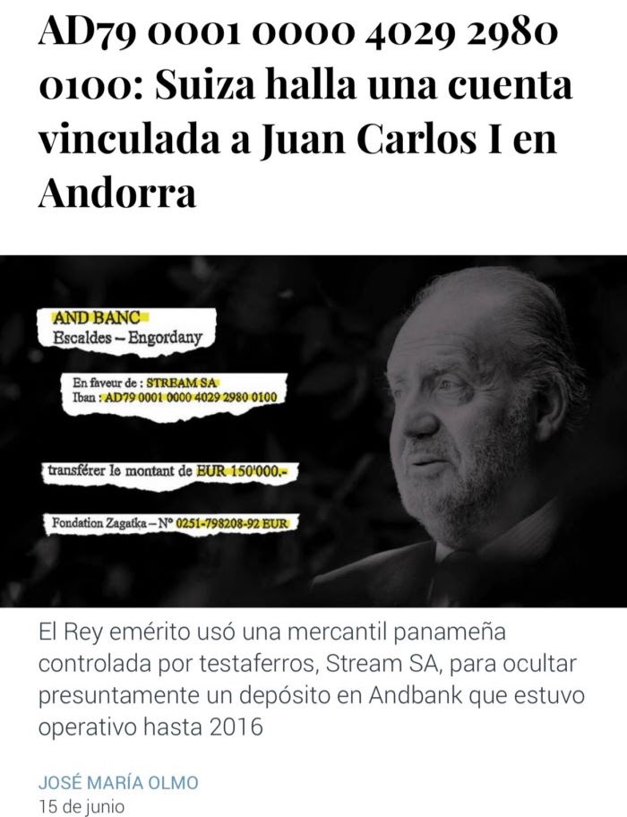 Investigación suiza descubre en Andorra cuenta sospechosa ligada a Juan Carlos I